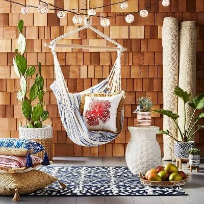Freshen up your outdoor area in sleek style with the Cameo Outdoor Rug from Opalhouse™. In a classic rectangular shape, this gray and white area rug features a subtle block-print design in gray and white for classic appeal, while its neat, finished edge adds polished flair to your space. A perfect outdoor accessory to infuse some bold sophistication into your outdoor retreat, this printed area rug comes with a latex backing to help it stay in place and create secure footing.