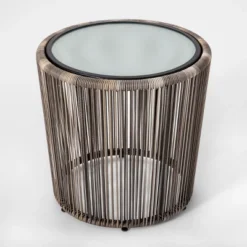 Create a sophisticated dining arrangement in your patio or backyard with this Leona Patio Dining Set from Opalhouse™. This outdoor dining set features a set of chairs and a round table to help you enjoy meals and beverages with family or friends. Designed on a rust-resistant steel frame, this beige dining set adds natural appeal to your dining space. With the cream cushions, the chairs offers comfy sitting while the stackable design allows easy movement and storage when needed. The table comes complete with an honeycomb top for an attractive look and an umbrella hole to help you enjoy meal in shade if needed. Add the Opalhouse Leona 46″ Round Crushed Bamboo Stamped Steel Top Patio Dining Table and Opalhouse Leona 4pk Woven Stacking Patio Dining Chairs to complete this dining set.